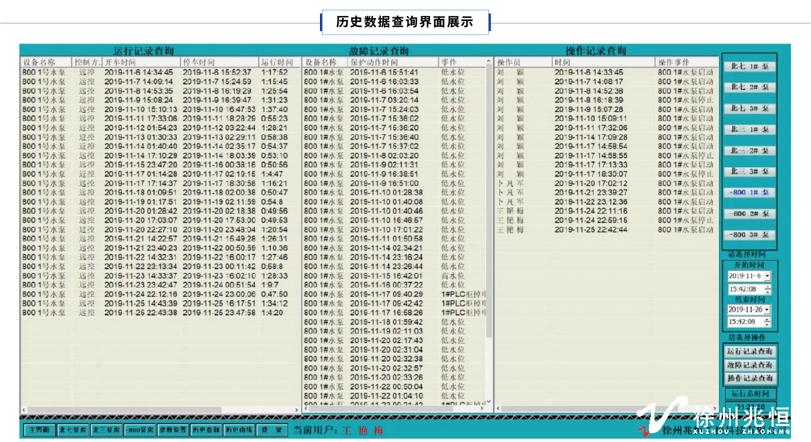 (3)記錄水泵的故障信息,并支持查詢(xún)一年的設(shè)備故障信息。
